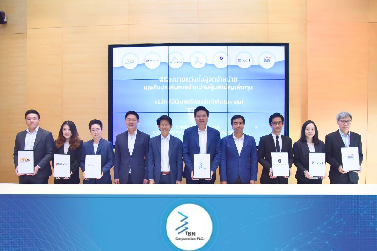 Recently, TBN signed an agreement for the initial public offering (IPO) of 25 million common shares, representing 25% of the total issued and fully paid-up ordinary shares of the company. The IPO is under the management and joint distribution of Finansa Securities Public Company Limited and CGS-CIMB Securities (Thailand) Co., Ltd., along with senior executives from securities companies and financial consultants.