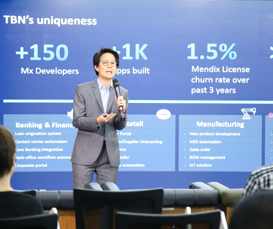 ทั้งนี้ TBN ต่อยอดจากประสบการณ์ความเชี่ยวชาญในเทคโนโลยีของ MENDIX มากว่า 18 ปี โดยเฉพาะบริการออกแบบและพัฒนาระบบดิจิทัลแบบครบวงจร ให้คำปรึกษาด้านดิจิทัลทรานส์ฟอร์เมชันและพัฒนาโซลูชันตามความต้องการของลูกค้าโดยใช้ซอฟต์แวร์ Low-Code ตอบสนองลูกค้าองค์กรที่มีความต้องการโซลูชันที่เหมาะกับองค์กรทั้งภาครัฐและเอกชน ตั้งเป้านักพัฒนาซอฟต์แวร์เพิ่มอีก 150 คน ภายในปี 2568 และมีบุคคลกรที่มีคุณภาพเพิ่มขึ้นถึง 500-1,000 คน ตอบโจทย์ความต้องการใช้ซอฟต์แวร์ทุกกลุ่มอุตสาหกรรม หวังดันไทยเป็น Low-Code Hub ของเอเชียและระดับโลกในอนาคต